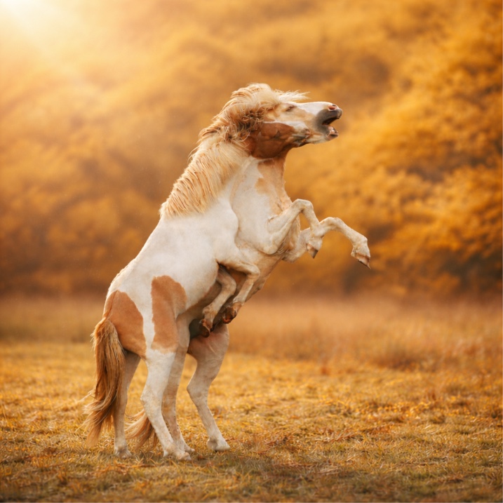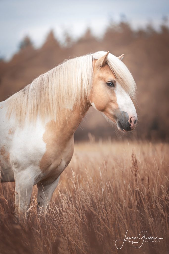 Isabellfalbschecke (reinerbig gescheckt) mit blauen Augen. Diese Farbkombination ist nur 2x weltweit in WF registriert (mit seinem Sohn aus 2024)